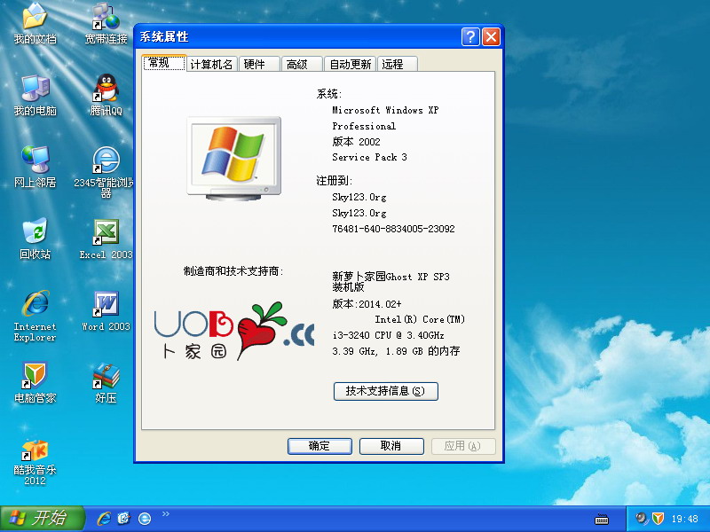 * 安装过程中可听听歌、玩玩小游戏、设置系统属性、查看设备管理器等功能(此功能为萝卜家园首创)。