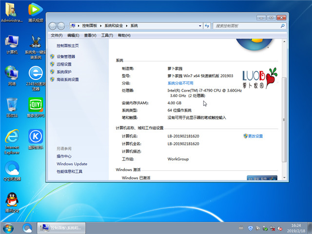 新萝卜家园 Ghost Win7 64位 快速装机版 v2019.03 具有更安全、更稳定、更人性化等特点。集成最常用的装机软件,集成最全面的硬件驱动,加上萝卜家园独有人性化的设计。是电脑城、个人、公司快速装机之首选!拥有此系统,您也可以轻松成为装机高手!